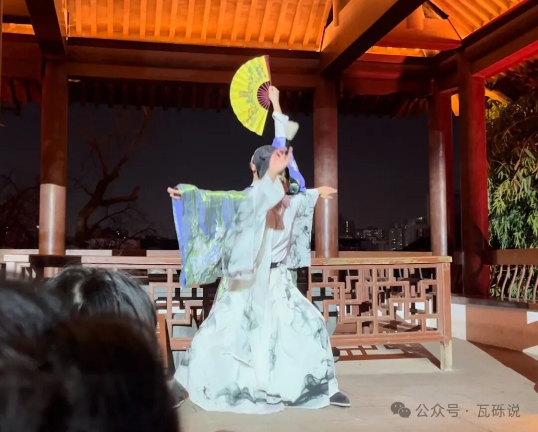5️⃣崔颢壁,演员在旁边搁笔亭里演出,最佳观演位置靠亭子越近观看越清楚。这边是故事情节演绎,结合配音讲述。