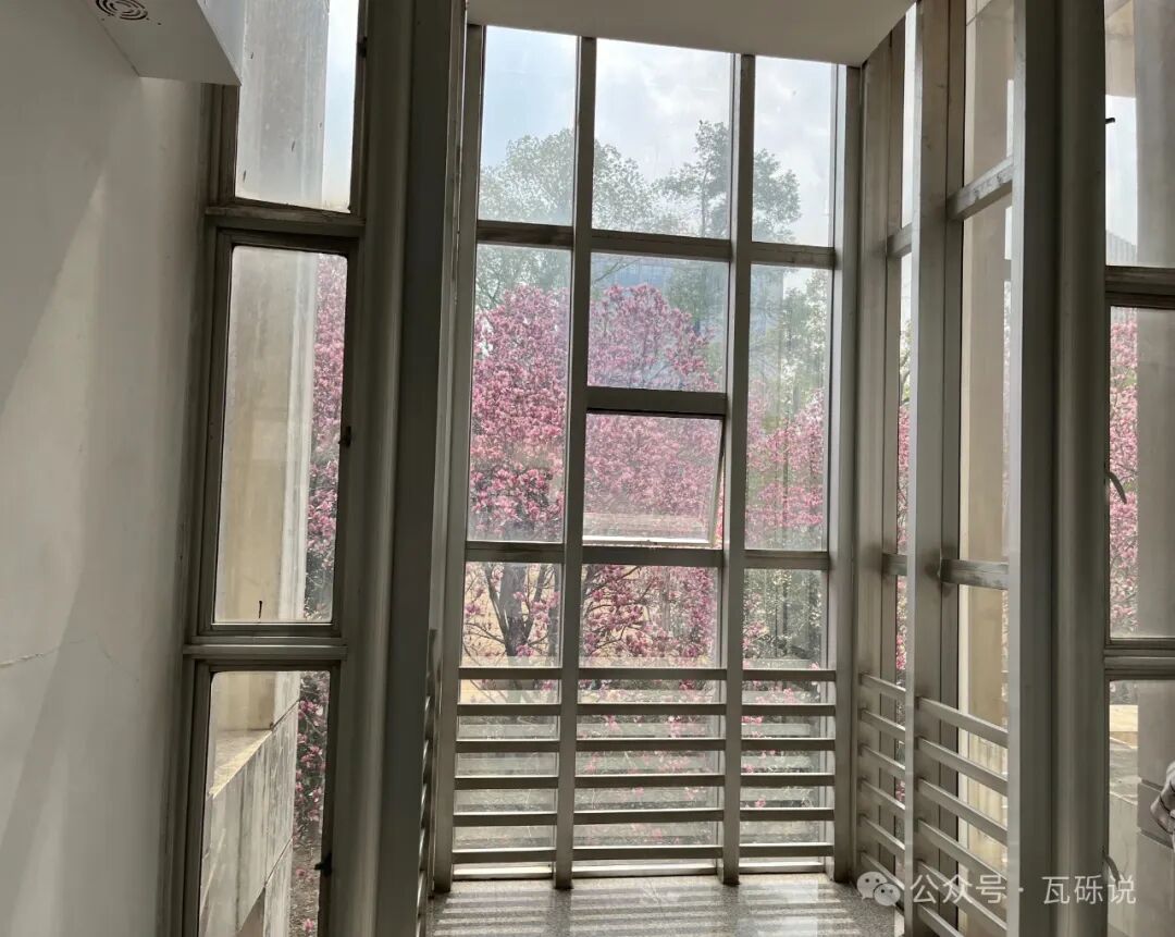 📷最佳拍摄机位:教学楼二楼,左侧教室,走廊的玻璃处和教室内窗边拍照。若二楼人太多也可以去三楼,三楼基本没人,但是花只能拍到部分。