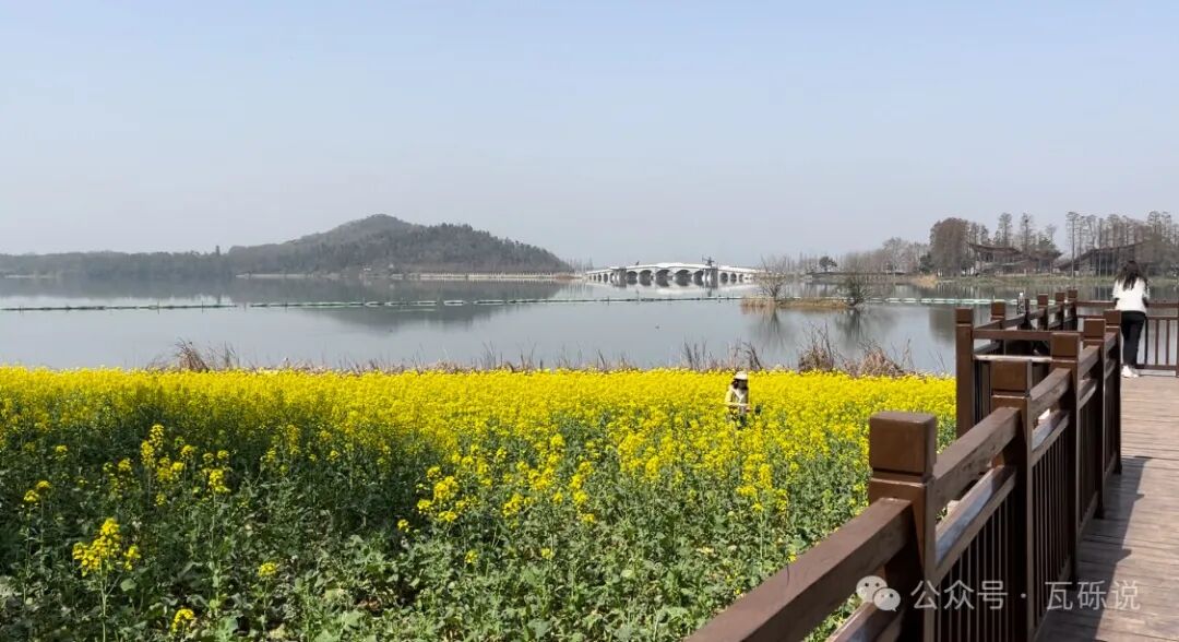 花海深处有个看台“亲水云台”,可以赏湖景,吹湖风。湖对面是东湖落雁景区,风景也很不错,感兴趣的可以在我往期文章查看详细游玩攻略。
