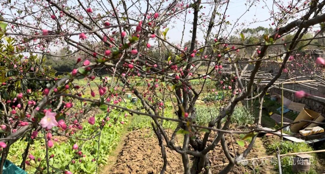 这里是如世外桃源般的小村庄,刚走近时,耳边是风声、鸟鸣、犬吠,许是时间尚早,路上行人不多,相隔较远,少有人语。正觉得太过安静之时,瞥见路旁有人戴着草帽在锄地,这一幕让这个略显清冷的早晨有了暖暖的烟火气。