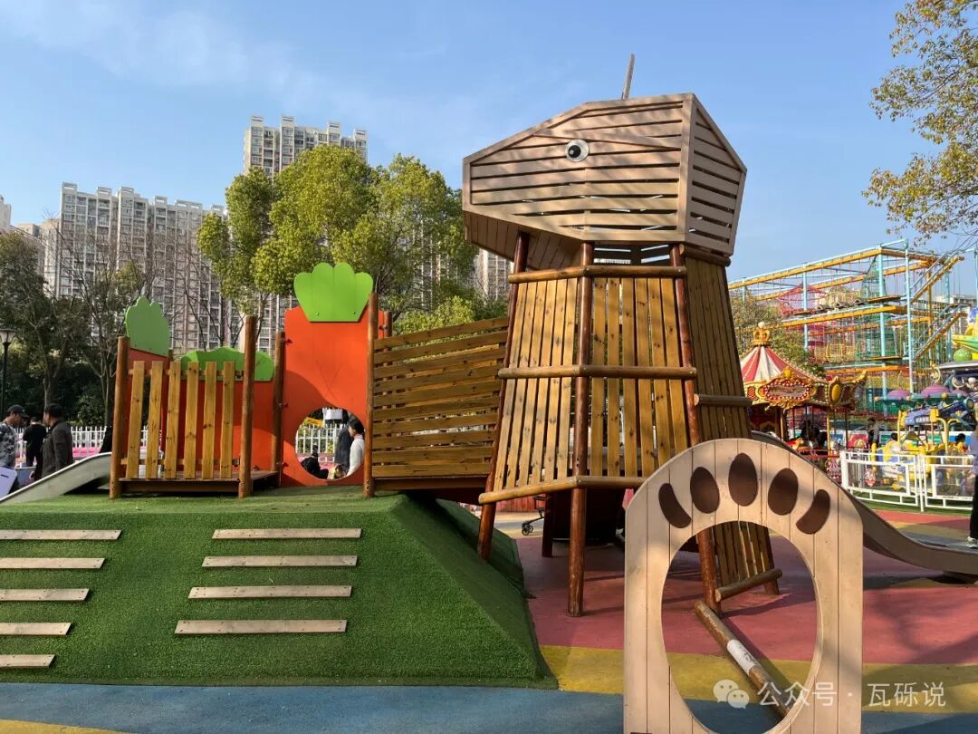 公园面积不大,除了赏花,也可以搭帐篷、遛娃。里面有儿童游乐区,滑滑梯、红色沙坑,秋千等项目都可以免费玩,另有其它收费游玩项目。