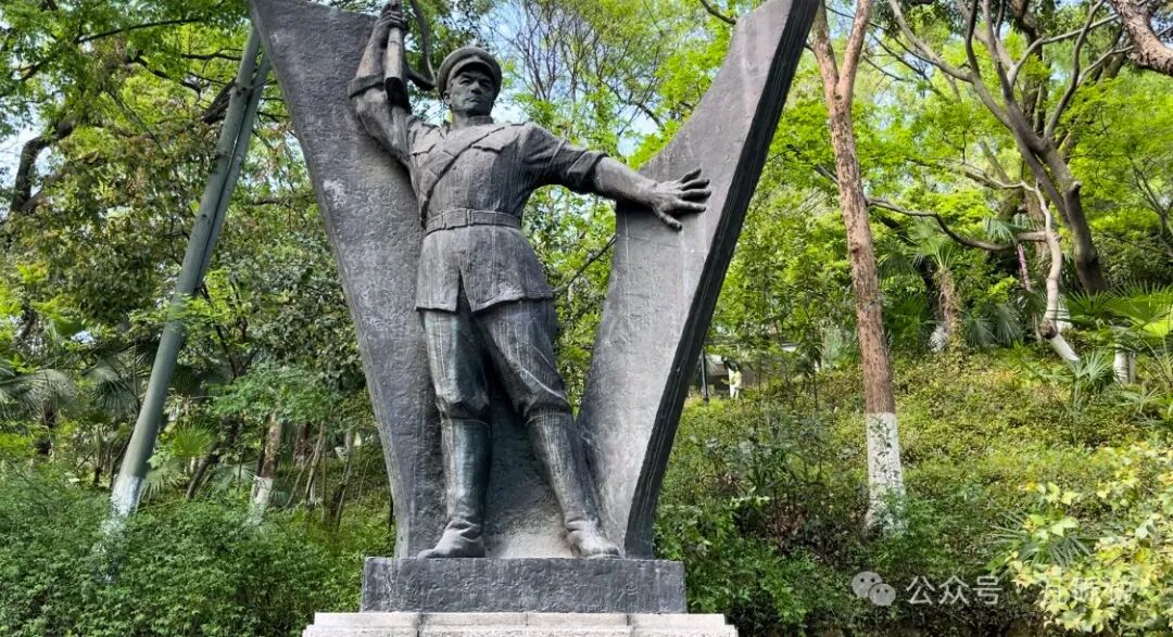 再往前走经过一片绿植养护区(盆栽景观类),之后会看到“首义枪声雕像”。
