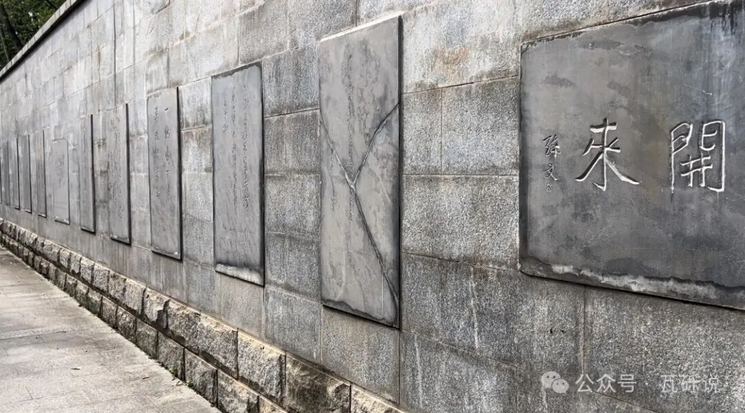 面对烈士祠往右边走绕到它背后,有辛亥革命人物手迹石刻展。路边石刻,一共两层。