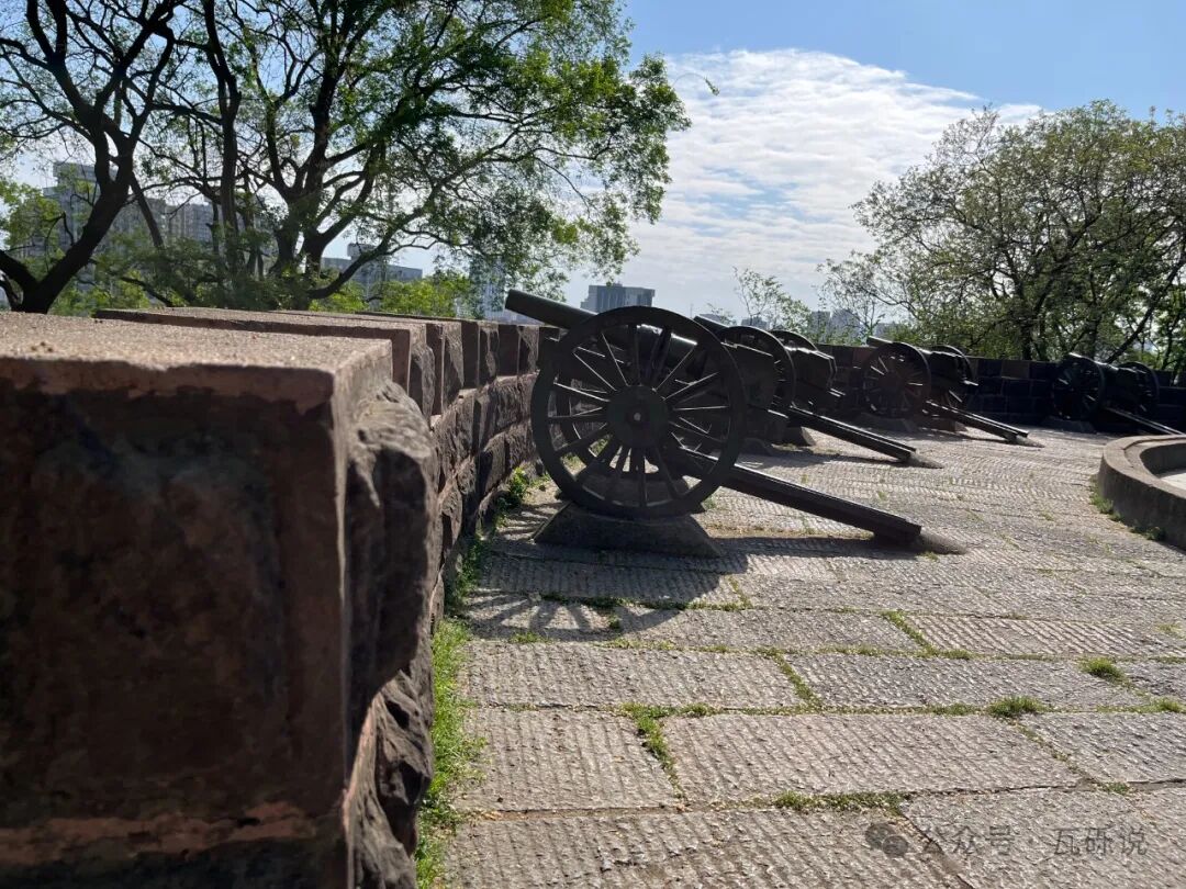 沿着雕像左边的石阶往上行,一直到最高处后是平整的步道。往左走,能看到“炮台”。
