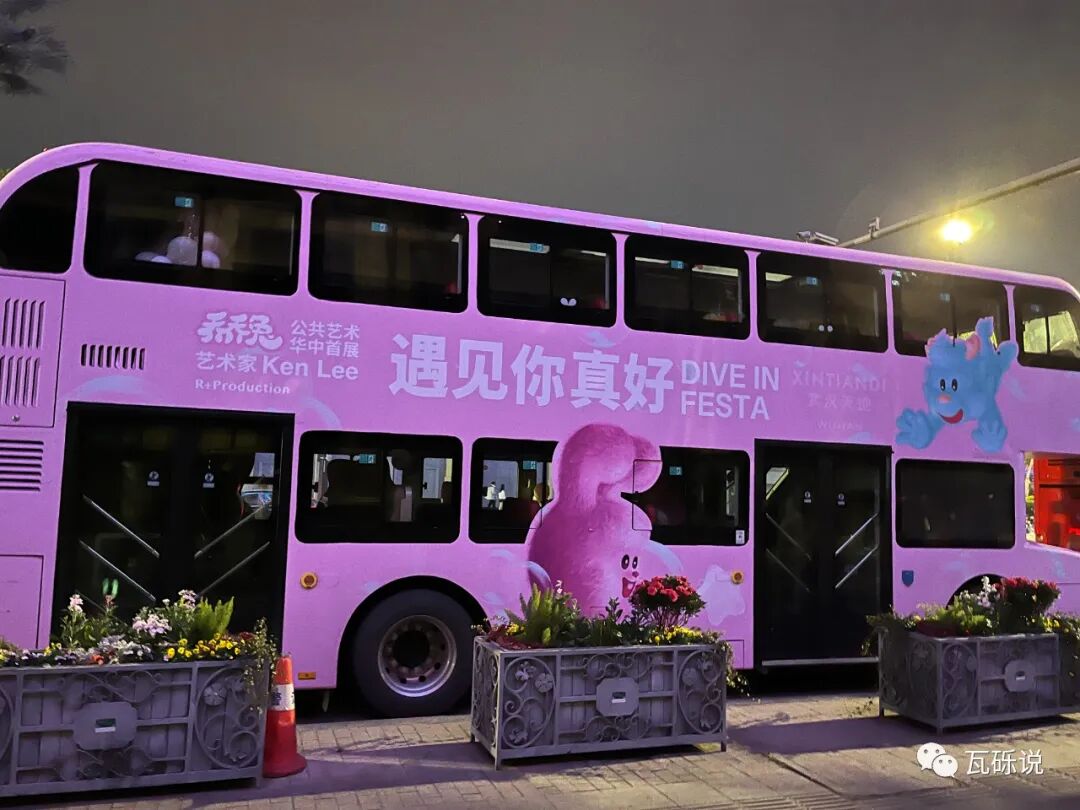 再往前走几分钟,停靠在路边粉粉的双层观光巴士,也太好看了吧!