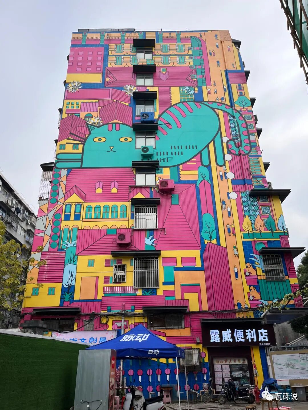 出地铁口第一眼抬头看到的便是一栋楼外墙面个性的卡通彩绘,墙上的窗户、空调都巧妙的成为了这幅图画的点缀,让平面图瞬间变得立体生动起来。它是一张属于昙华林的明信片,让你在进入这条街道第一眼便了解,昙华林就是这样一个文艺随性又充满个性和小趣味的地方。