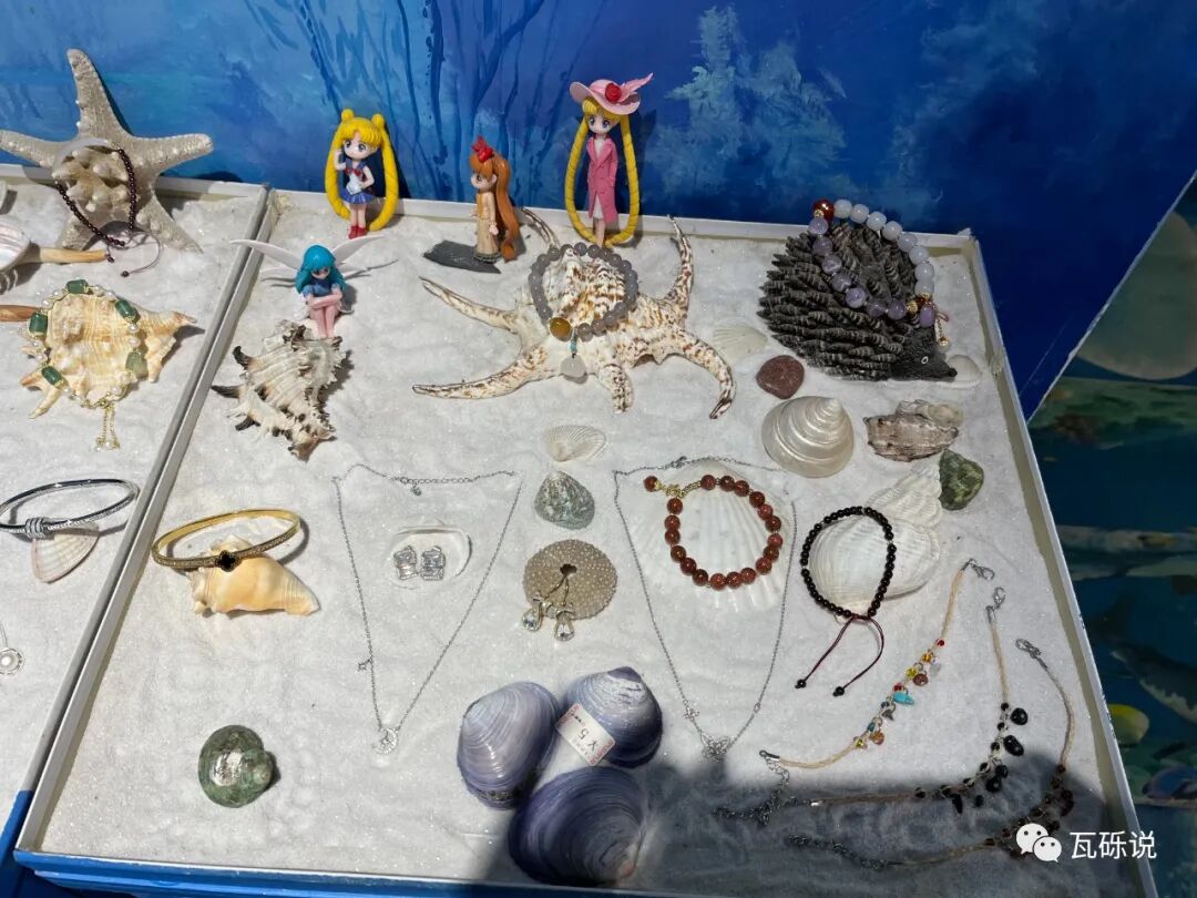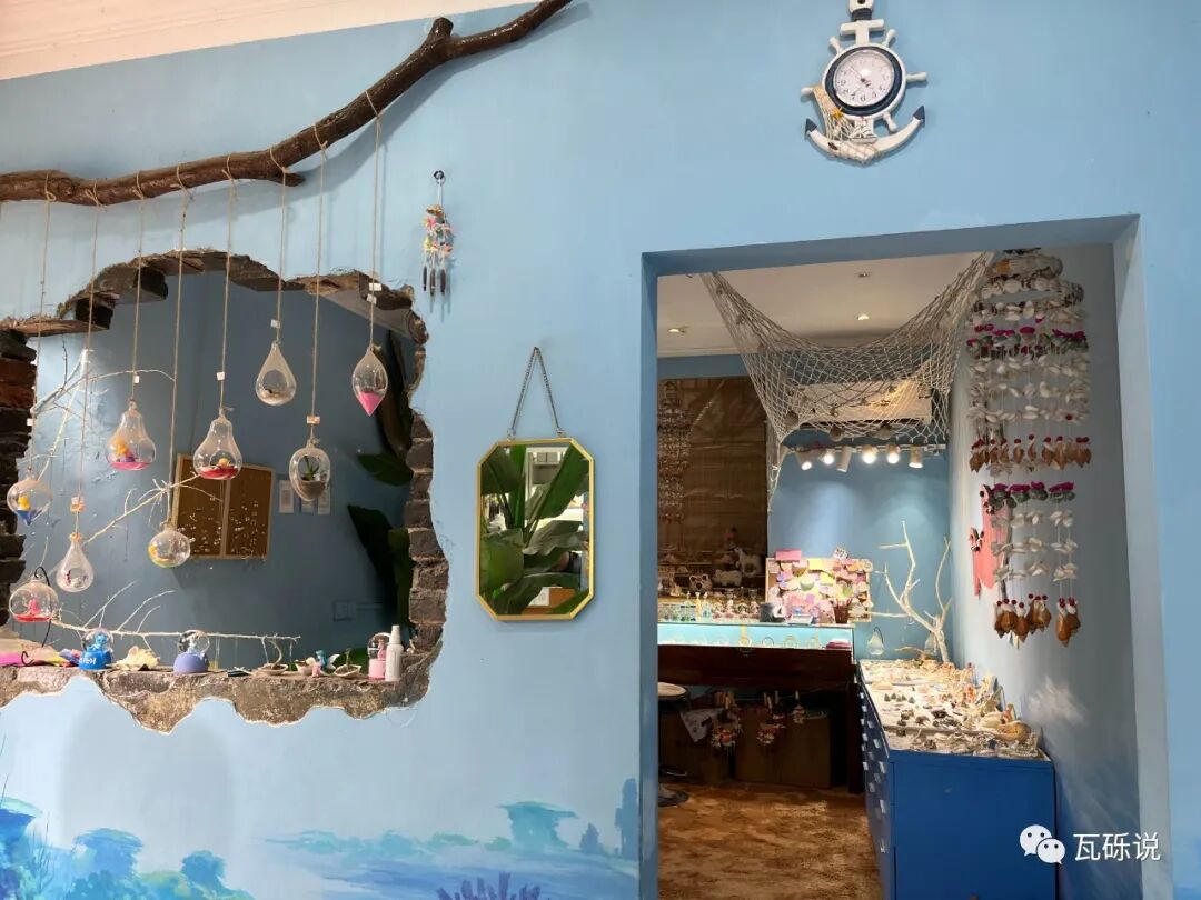 🐚推荐一家宝藏店铺“昙海银沙”,经过时被老板悬挂在屋内的流沙吸引,入内才发现这家店铺设计充满了巧思。以蓝色系海边为主题,有渔网、贝壳和海螺、风铃、沙地、树枝等元素。耳环、手链等首饰像是摆放在白色海盐盘里,还有一些放置在贝壳和海星上。首饰的款式也很出彩,很容易挑到喜欢的,挑选饰品的时候像是在海边拾珠宝,真的很妙!