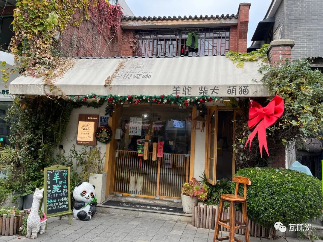 行走在这里你会看到很多猫咖,主打一个治愈。其中还有一家“宠咖”,羊驼、柴犬、萌猫。下图中摆放在门口的小黑板上有详细的介绍。