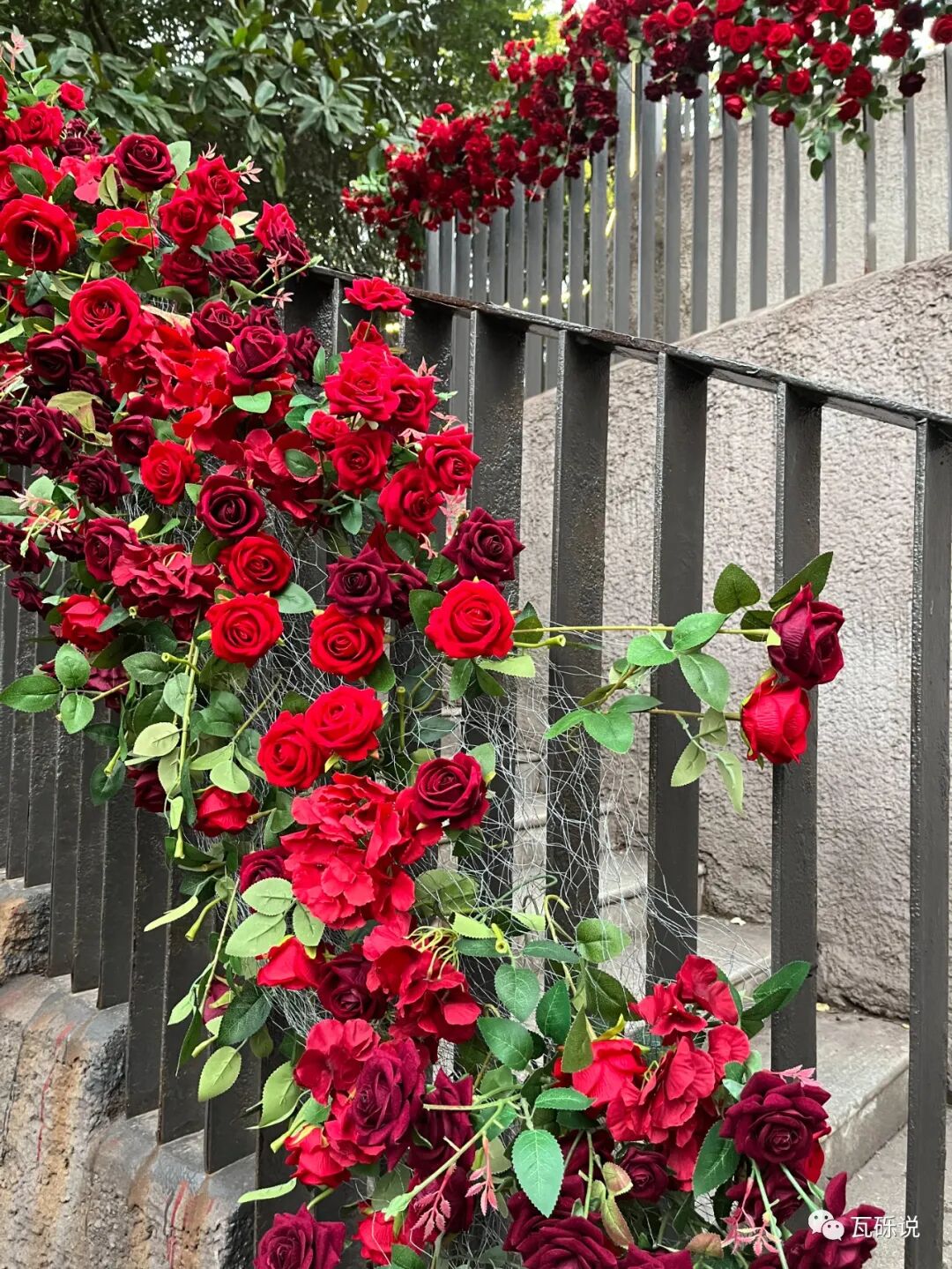 玫瑰阶梯花是假的,但拍照好看是真的。