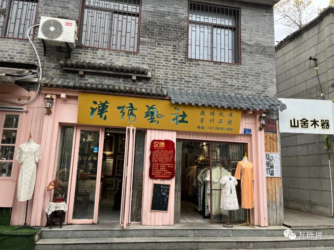 这边还有一些手工艺品店铺,“汉绣艺社”的绣品很精致。喜欢的朋友可以去看看。价格会略高些,几百到几万块钱的,毕竟手工艺品嘛。老板人也蛮好的,进店给你打招呼“随意看看啊”,如果你不咨询老板就坐在那绣绣品,不会打扰你,如果你咨询,老板会热情地给你介绍。