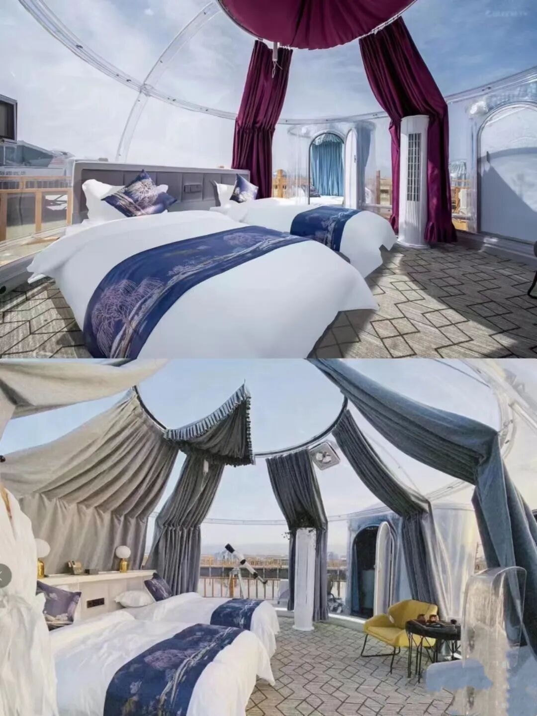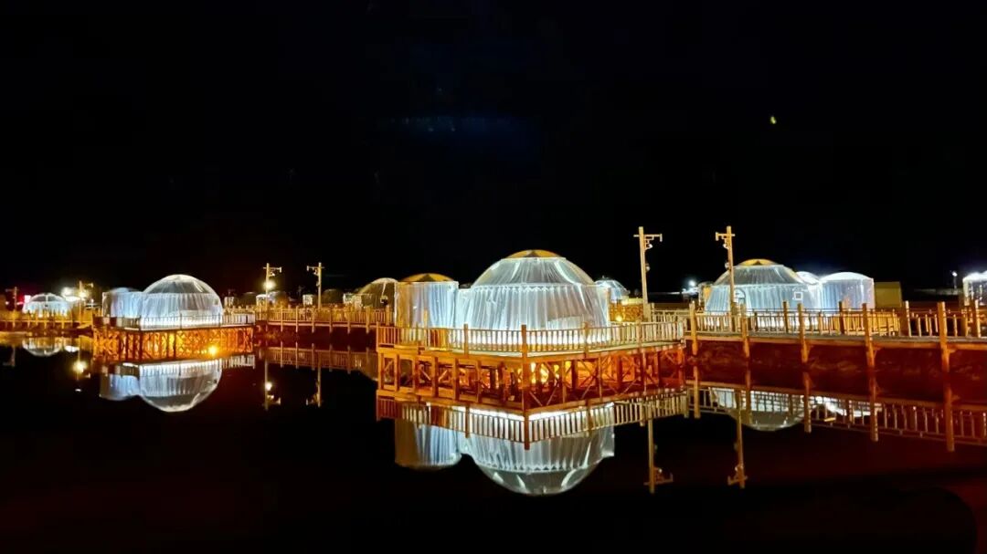 微咸的湖风吹着慵懒的云朵,躺在洁白的盐沙上欣赏辉辉日落与繁繁星空,置身于盐湖美景,在茶卡星空泡泡屋中,躺着就能看到漫天浪漫。