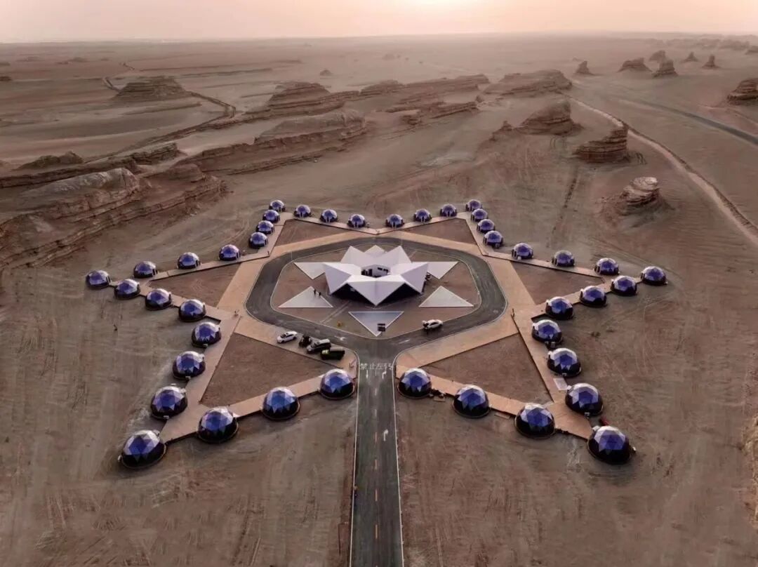 坐落于水上雅丹附近,颇具特色的星际戈壁酒店,将奇特的景观与空间感、未来感、科技感进行了碰撞与结合,在大漠中形成了最美星际。