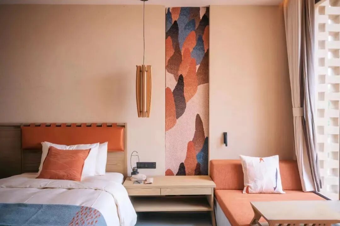 酒店还设有酒吧、篝火火塘、东驿美术馆等,抄经、临摹、亲子时光、汉服体验、精品文创等,更多艺术的融入,拉升住宿整体体验感。
