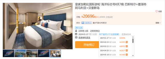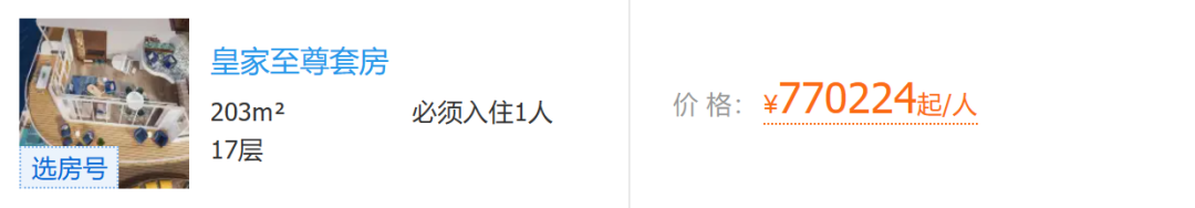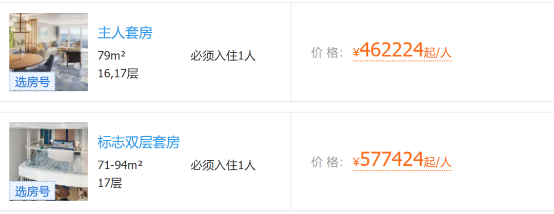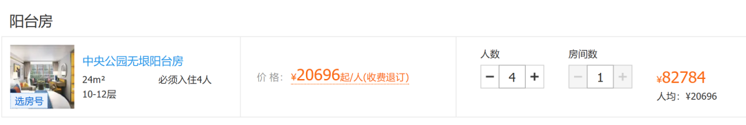目前船票远期最低价格为内舱房9758元起,首航的船票从阳台房起售,最低价格为20696元起。请注意,这里的报价是按4人住1间的单人均价。也就是说,如果现在想购入一间首航最基础的中央公园无垠阳台房(24㎡),需要支付82784元。