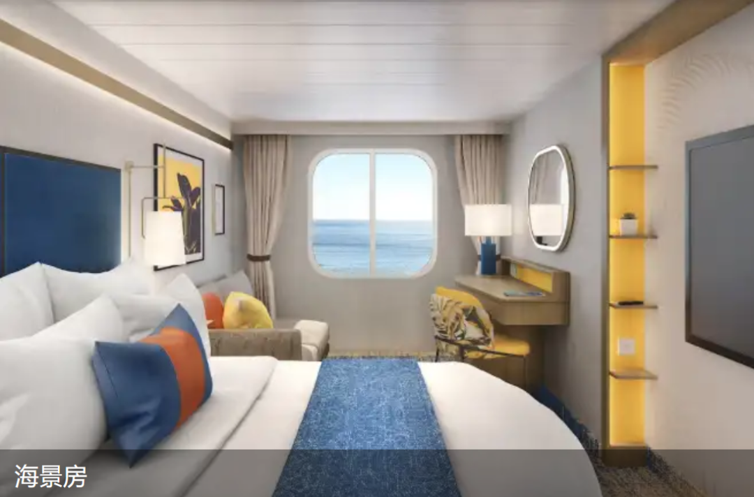 海景房是一款性价比较高的房型,因为它有观景窗,虽然窗户不能打开,但在房内就能欣赏海景。主要分为海景房和全景海景房两种房型。