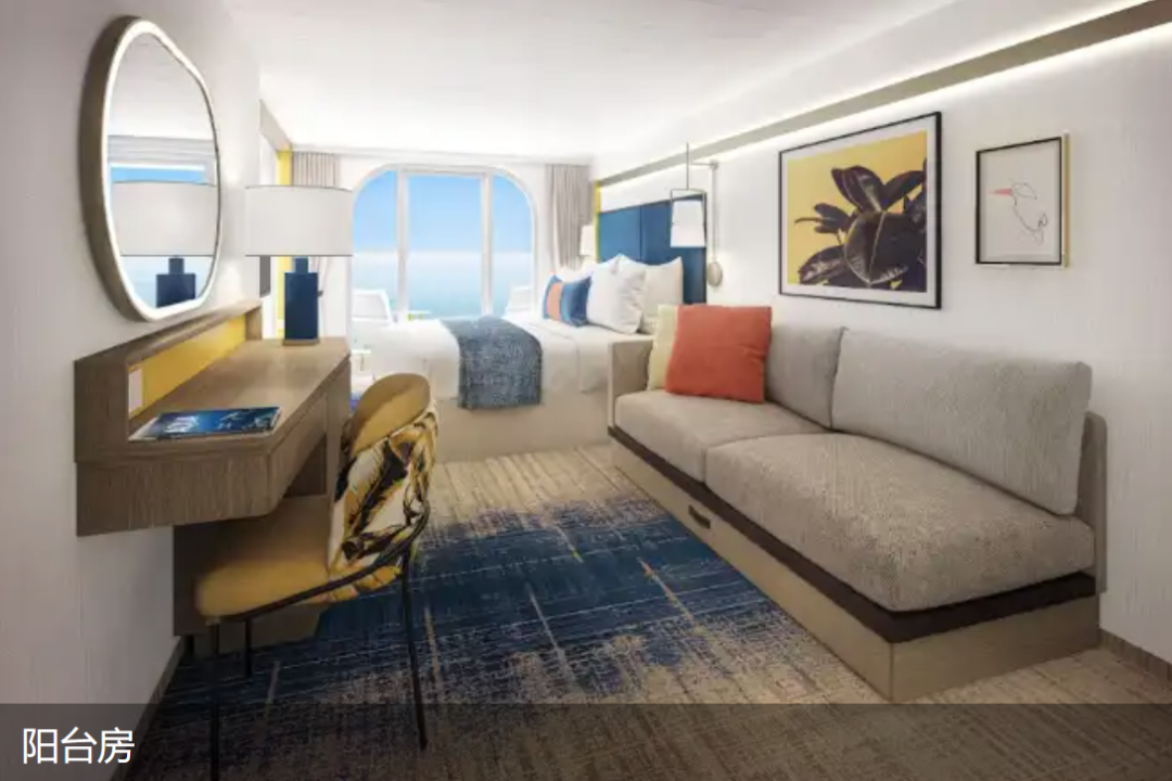 ▲阳台房:舱房面积24㎡,阳台面积5m²