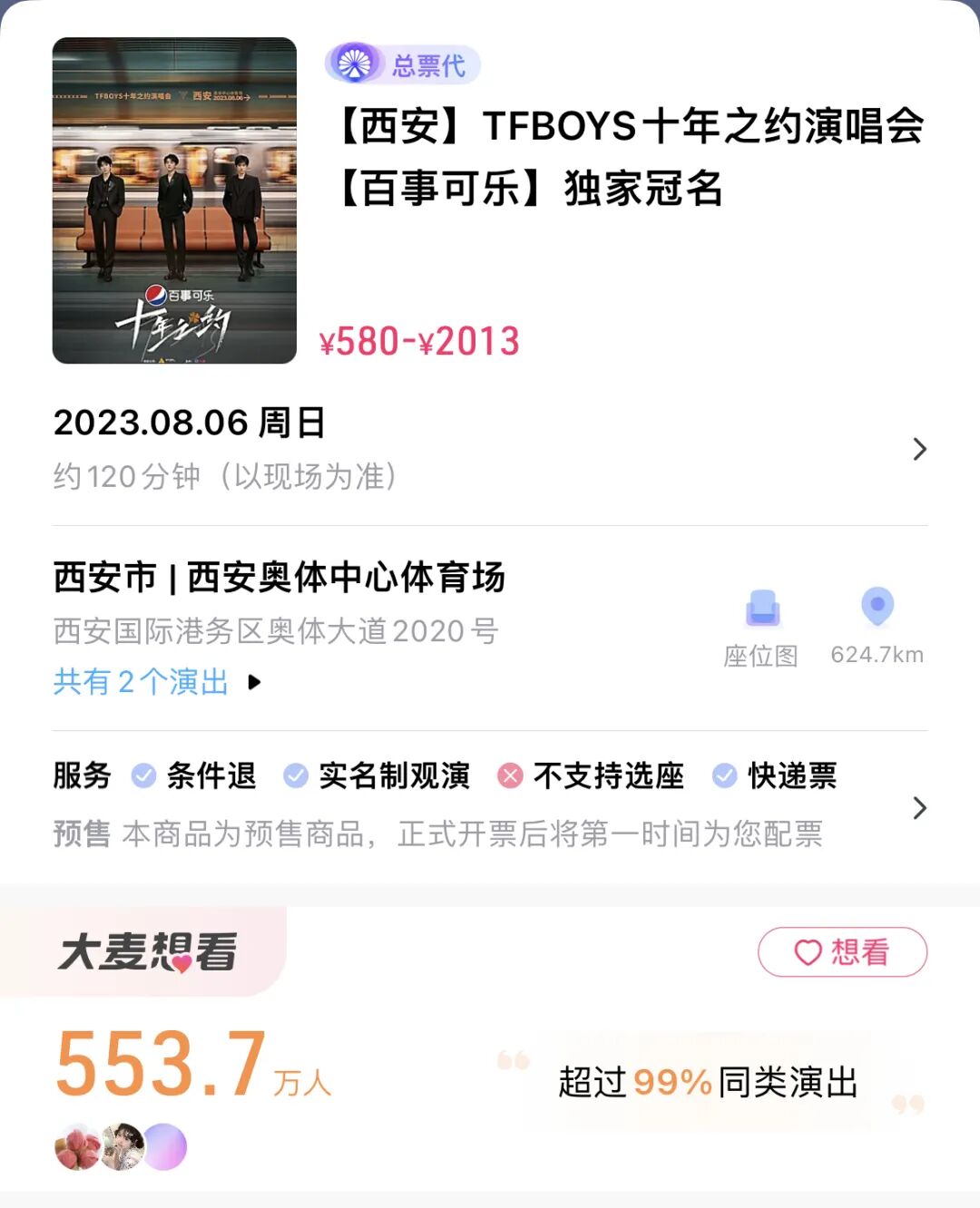 7月21日,TFBOYS组合官方微博发文官宣TFBOYS十年之约演唱会,将于8月6日在西安奥体中心体育场举行。虽然售票平台仅计划2.9万张门票,但关注人数已超过550万。还没开始放票,粉丝们就很有默契地提前预约酒店。