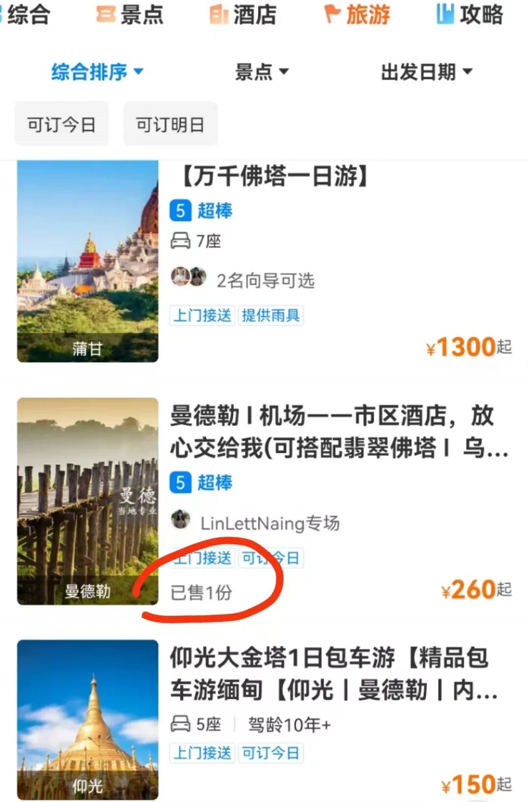 网络上对缅甸的“讨伐声”不绝,OTA平台对缅甸旅游产品与酒店的推荐也越发谨慎。各大旅游在线平台都鲜有当地的跟团游和自由行产品,仅剩的“一日包车游”,半年也仅售出个位数。杭州直飞缅甸的航线仍在关闭状态,各大旅行社也暂停了缅甸游项目。就连和缅甸相关的旅游攻略,也都是求生欲满满。
