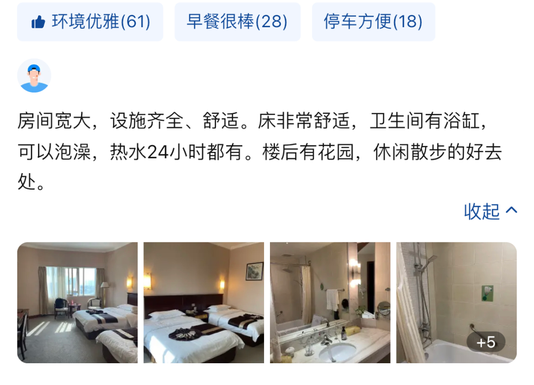 针对这类全服务酒店,硬件设施的齐备程度无可挑剔,稍有老旧故障也是瑕不掩瑜。只要网络预订渠道畅通、定价实惠、口碑不差,叠加上#老干部风格#标签,就能有机会触碰到流量密码。
