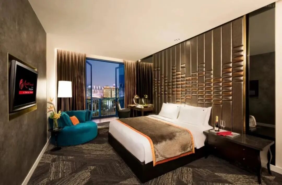 新加坡圣淘沙名胜世界硬石酒店,一向以独特的摇滚魅力和高品质的住宿体验著称。它的造型就像是一艘摇滚飞船,从大堂到房间,每一个设计细节都透露着Hard Rock的奢华质感。