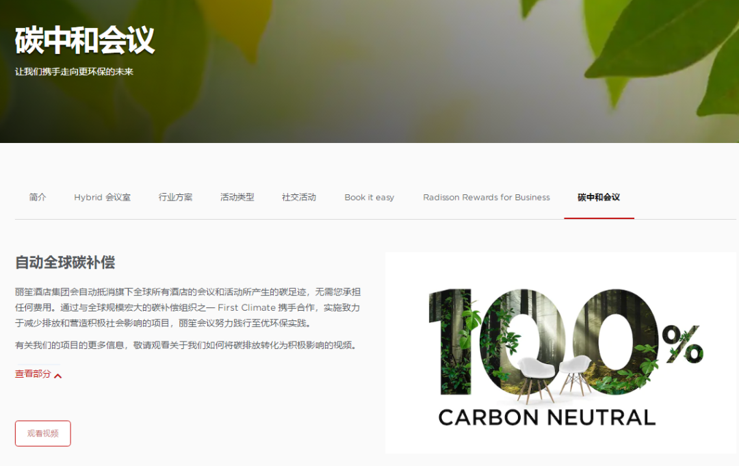 希尔顿集团的“会议影响计算器”(Meeting Impact Calculator)可测算并生成会议举办期间的碳排放、水耗和废弃物排放报告。根据报告测量数据,希尔顿还可向宾客提供建议,降低会议活动对环境的影响。