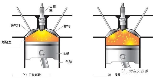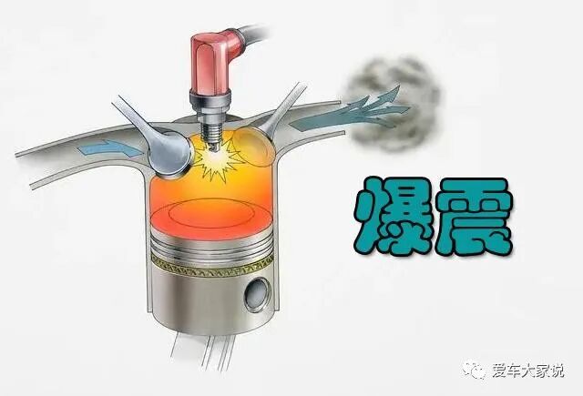 但是火花塞点火的时候燃烧室里已经充满了可燃混合气,在一些极端情况下,比如发动机温度高、燃烧室积碳严重,此时就可能出现这样的情况:火花塞点火后由于温度和压力突然升高,气缸里的混合气会在瞬间同时自燃,产生剧烈的燃烧,相当于爆炸一样,瞬间释放出巨大的能量,使发动机受到剧烈的冲击,这就叫做爆震。