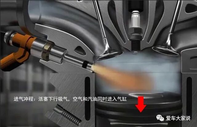 在进气的时候汽油也一起进入气缸,在接下来的进气、压缩过程中汽油和空气就在干一件事:混合。它们要充分混合均匀,这样才能实现完全燃烧。