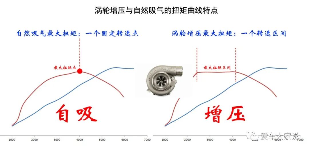 买车去看发动机参数,你会发现自吸发动机最大扭矩往往是在某个特定的转速,比如4000转,在这个转速之前或者之后,扭矩都达不到最大。