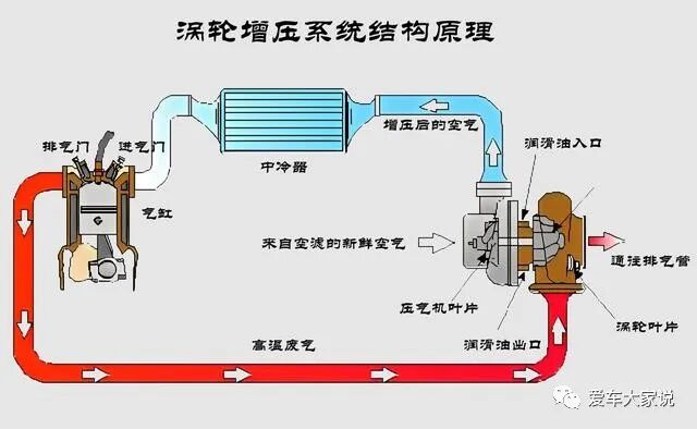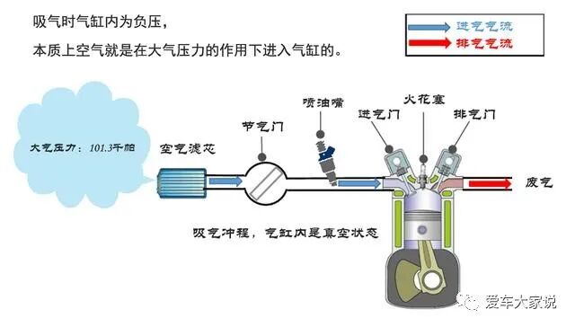 自然吸气发动机靠活塞吸气,其实我们也可以用增压的观点来分析,靠什么增压呢?当然是大气压力了。相对于完全真空状态而言,自然吸气发动机是在大气压力的增压作用下运行的。