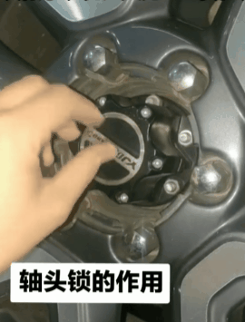 轴头锁是一些适时四驱车前轮上的零件,它位于车轮正中心的位置,有锁止和打开两种状态。学名叫做轮边离合器,是控制车轮与传动半轴分离和结合的。