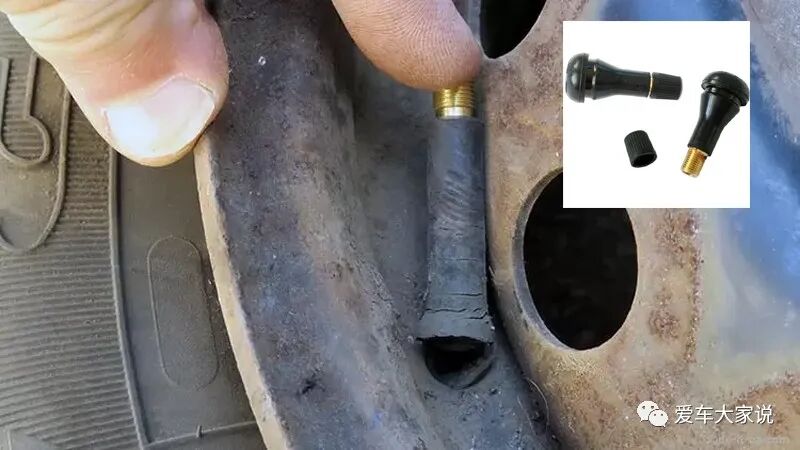 有时候轮胎漏气,但是怎么也找不到漏气点,这时候可以检查一下气门嘴。因为很多车的气门嘴是橡胶材质,使用时间长了橡胶老化开裂也会导致漏气。
