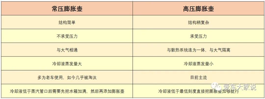 常压膨胀壶内部没有压力,多见于老车。