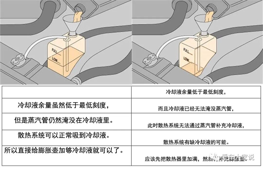 当你在检查爱车时突然发现冷却液低于最低刻度了,该怎么办呢?我想很多人第一反应就是赶紧把冷却液补充到安全刻度。