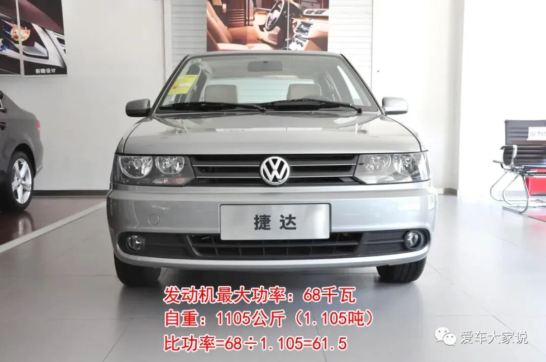 其实很简单。举个例子吧,比如2010款的捷达前卫,发动机最大功率68千瓦,整车自重1105公斤。比功率计算时功率的单位是千瓦,自重的单位是吨,所以捷达的比功率就是68(千瓦)÷1.105(吨)=61.5。