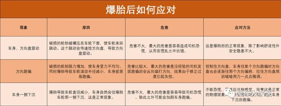 爆胎后的应对方法极其简单,只要你的车感足够好,那么你不需要学习或者训练,在发生爆胎时完全可以凭感觉平稳地把车停到应急车道去。就像你走路时被绊了一下会本能地调整身体平衡来避免摔倒一样。