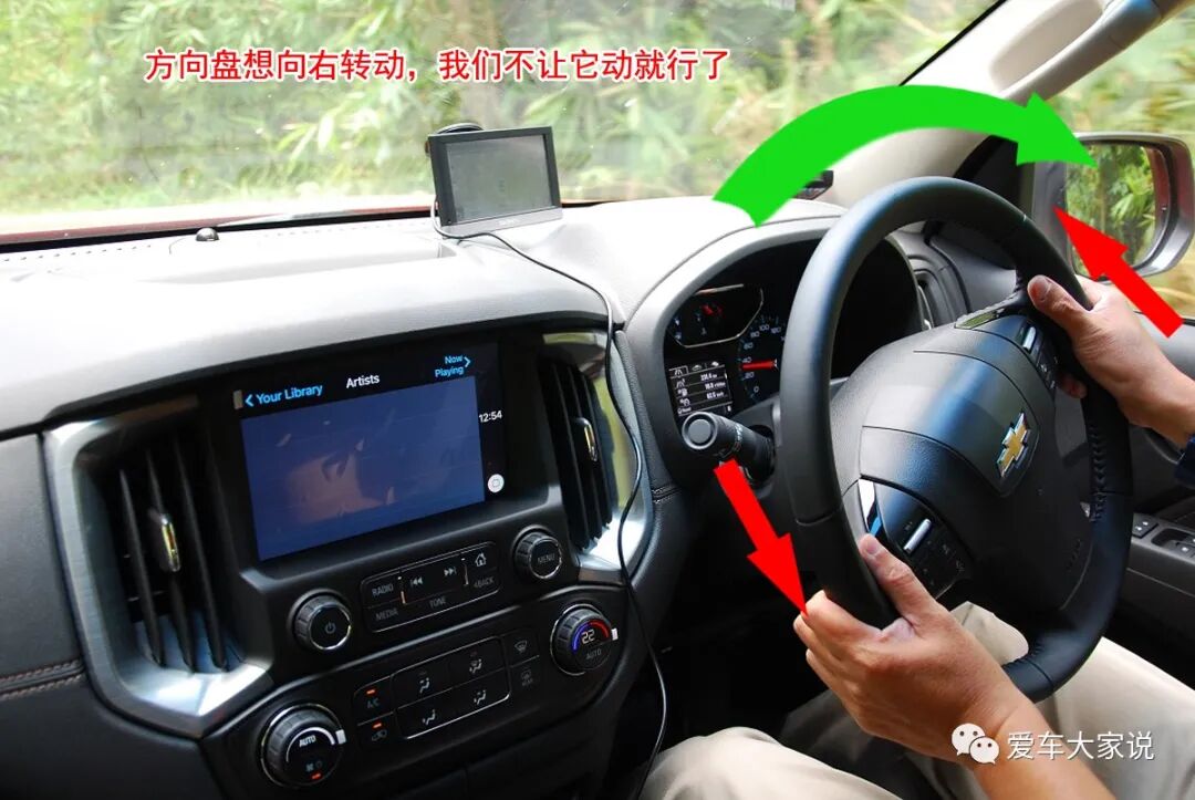 注意这里并不是要你死死抓住方向盘,那样反而会影响你的手感,弱化你对车身状态的感知。你要做的只是控制住方向盘,不让它自由运动就行了,然后根据情况再轻微调整。比如右前轮爆胎后汽车会有向右跑偏的趋势,此时方向盘也会在反作用力下逐渐向右偏。此时我们要做的就是拉住方向盘,不让它往右偏。这样你也可以轻松做到爆胎后车身稳如老狗。