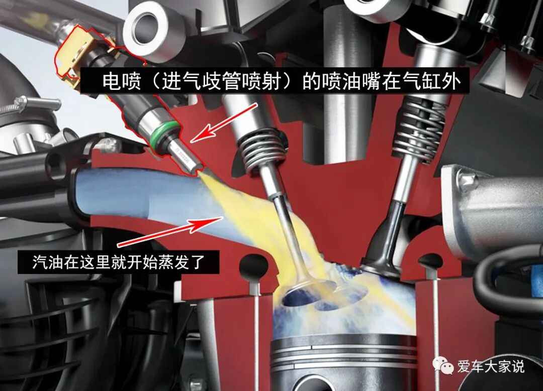 化油器发动机和电喷发动机都是在气缸外面的进气道里供油,汽油在进入气缸之前要经过一段进气道,在这个过程中高速流动的气流已经可以使汽油蒸发得很彻底了,进入气缸后还可以在压缩冲程继续蒸发混合。