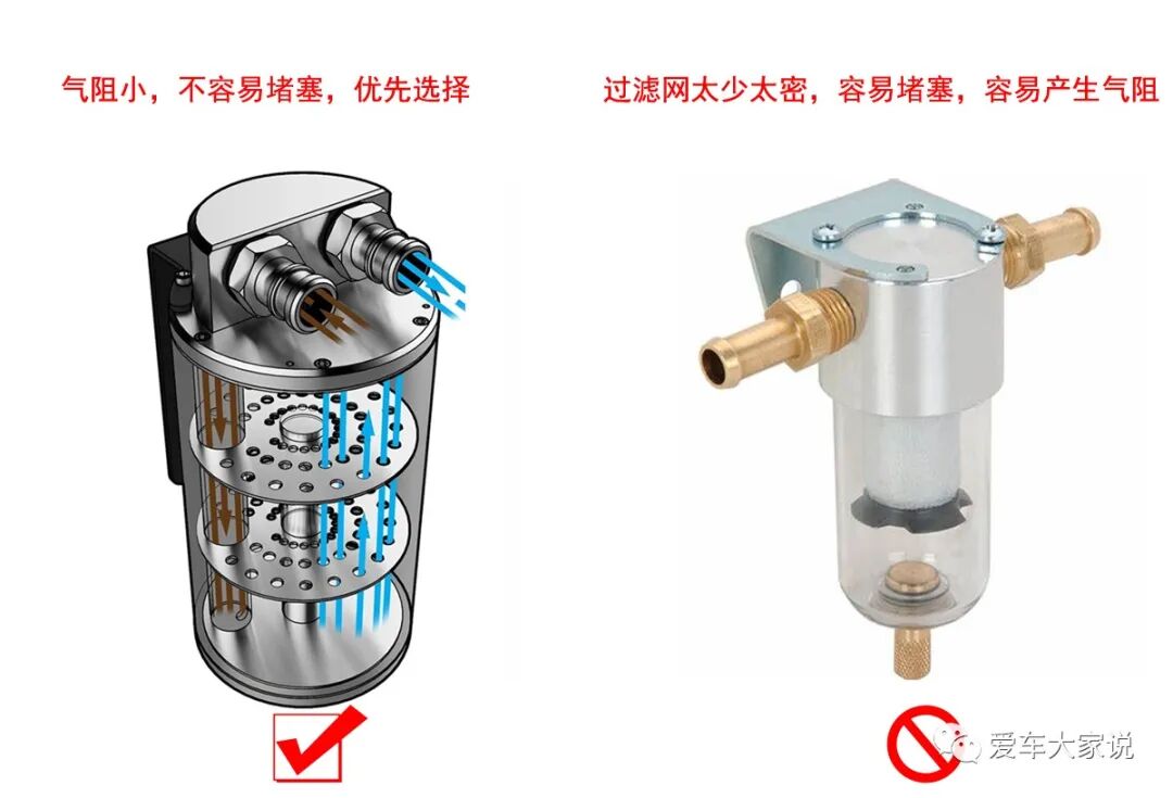 一般不太建议大家选择那种带细滤网的透气壶,因为滤网太细很容易被机油给糊上,导致通气阻力增加,从而影响废气阀的精准控制。