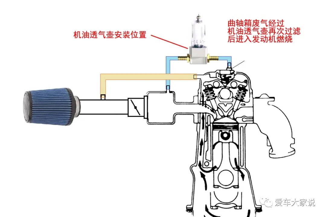 因为曲轴箱废气里的机油蒸汽是无法完全处理掉的,所以发动机工作时总是会有少量机油蒸汽经过进气歧管、进气门来到燃烧室被烧掉。于是就出现了进气歧管、进气门和燃烧室的积碳。而且油气分离器工作一段时间后过滤效率会下降,这时不仅会进一步加剧积碳,还会导致机油异常消耗。机油透气壶是干什么的