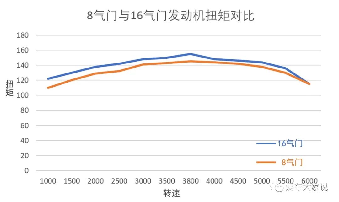而16气门发动机进气门更多,进气效率更高,所以对同样技术水平、同排量的发动机来说16气门整体扭矩肯定比8气门更高。