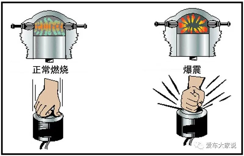 爆震指的是火花塞点火后燃烧室里同时出现了多个着火点,使混合气燃烧的速度加快了,能量释放速度更集中,因此会产生更强烈的冲击力。