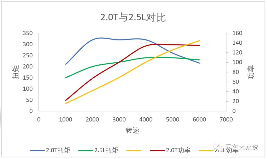 因为厂家给出的发动机功率都是最大功率,出现在特定转速下的。而加速时用到的则是整个可用转速区间的功率。2.0T发动机虽然最大功率不如2.5自吸高,但在整个转速区间内它的平均功率却远高于2.5自吸,因此加速肯定更快。