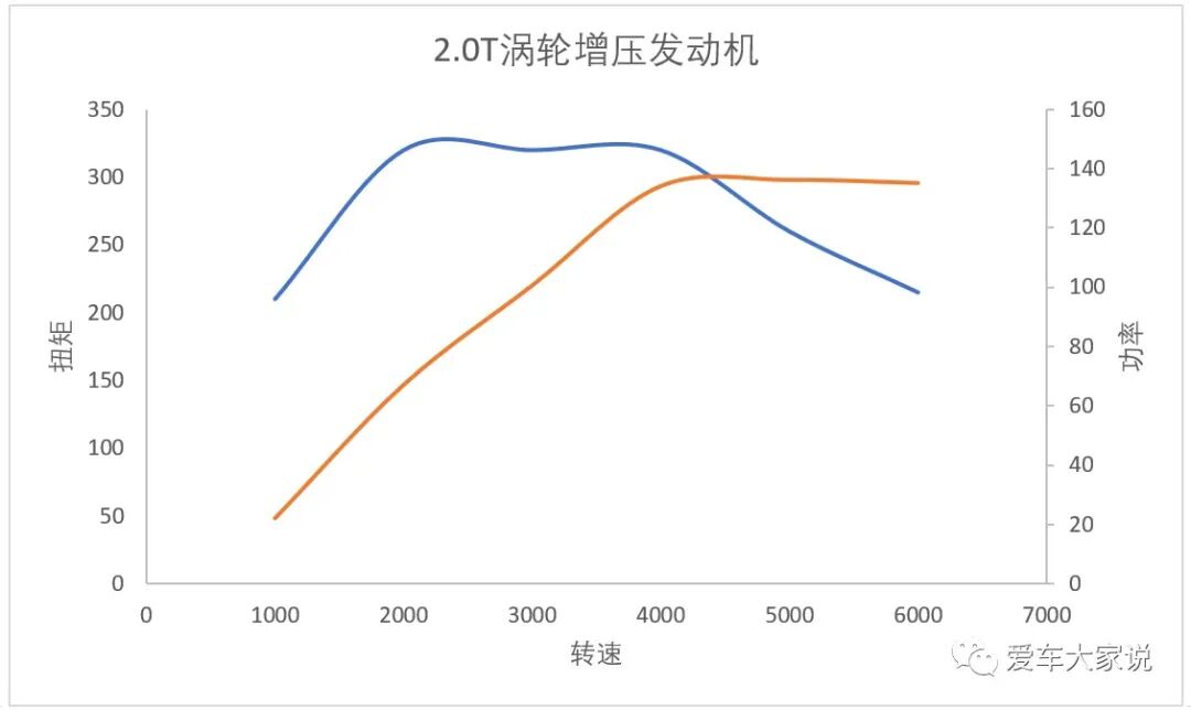 然后我们来看2.0T发动机的表现如何,下图是某2.0T发动机的外特性曲线。