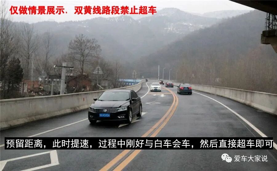 好处之二就是你有更多的加速距离和时间。比如你与前方车辆保持50米的跟车距离,这时候来到一处比较长的直道,你看到对面有一辆车开过来,而它后面没车。那么在对面车与前车会车的时候你就可以利用这50米距离提前加速了,在你加速的过程中对面来车刚好与你擦肩而过,此时直接变道即可。等你接近前车的时候你的车速就已经充分提起来了,这时候直接快速超越然后变道回自己车道就行了,这样超车会更快,自然更安全。技巧2:前方多车排队,超车前要学会按兵不动,静观其变