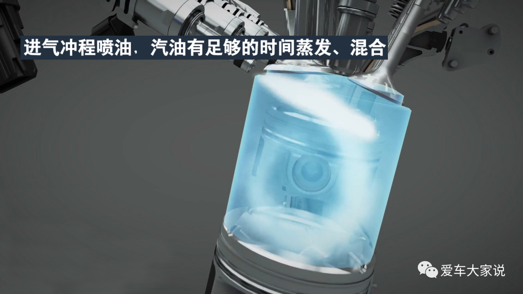 之前我们说过,不管是柴油还是汽油,进入气缸后都必须先蒸发,与空气充分混合后才能燃烧。汽油机在进气时就开始喷油,等点火的时候汽油已经与空气充分混合了,所以可以在瞬间把混合气烧完。所以即便是高转速下汽油的燃烧速度也跟得上。