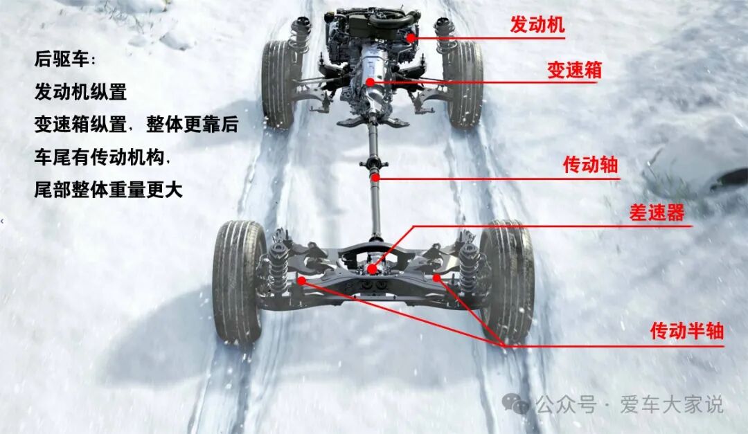 而后驱车虽然发动机变速箱也位于车头,但相对位置明显更靠后,而且车尾还有传动机构,因此车尾会比前驱车更重一些。这对行驶稳定性的影响也很大。