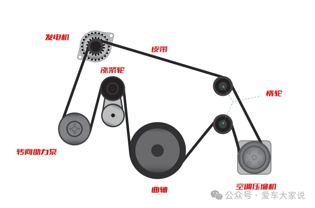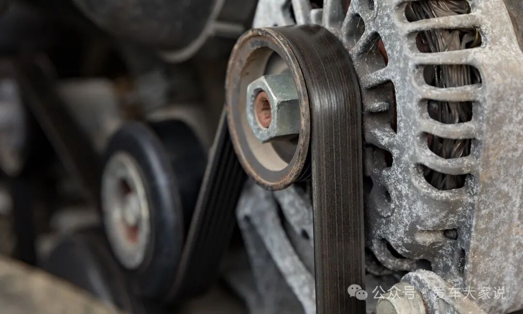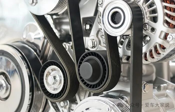 由于发电机皮带轮直径很小,需要很大的摩擦力才能驱发电机工作,所以大多数车辆发电机旁边都有一个惰轮来增加皮带与皮带轮之间的摩擦力。不知道你的爱车是不是这样的呢?