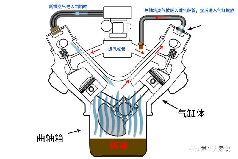 由于曲轴箱是密封的,如果窜气不处理的话会导致曲轴箱压力升高,把发动机给憋坏。所以发动机都设置了一个曲轴箱通风系统。把曲轴箱里的废气引入到气缸里烧掉。