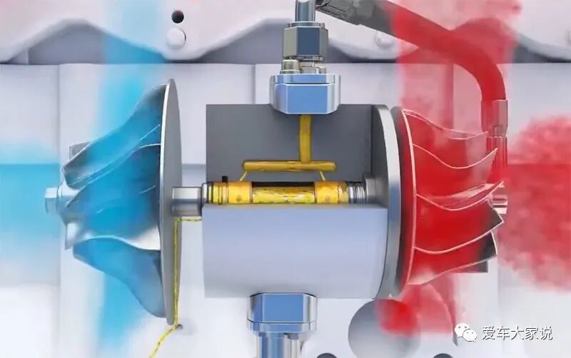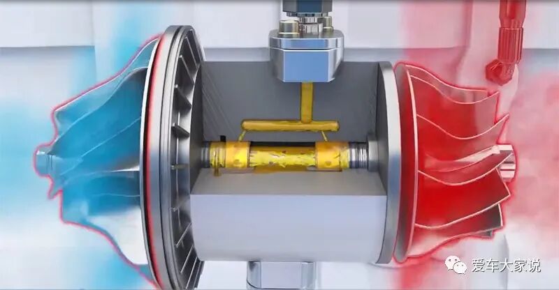 但是想把涡轮轴悬浮起来就需要机油有一定的压力,由于机油压力很高,所以机油就有可能从涡轮轴与涡轮体之间泄漏出来。