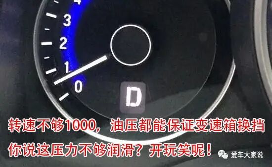 2、空挡滑行时发动机转速虽然很低,但这个转速足够让变速箱油泵产生足够的压力了,根本不存在由于转速低而润滑不足的情况。不信?你开车挂D挡时不踩油门吧?发动机处于怠速吧?你可知道自动变速箱挂挡是靠油泵提供压力来实现的,既然怠速时的油压都能让换挡机构的离合器保持足够强大的压紧力度,那为什么就满足不了润滑的需求呢?